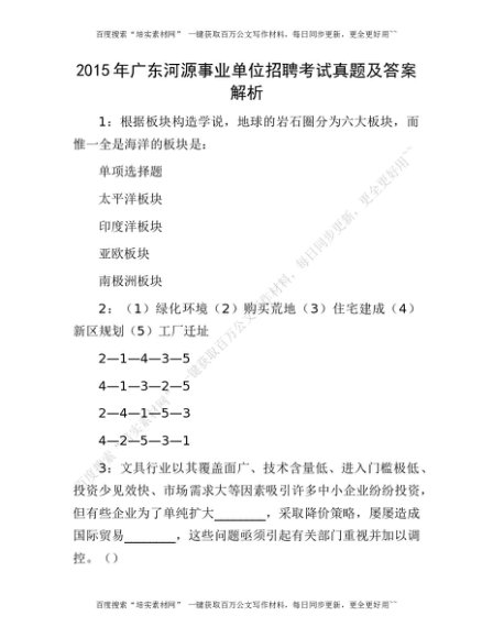 公考遴选-2015年广东河源事业单位招聘考试真题及答案解析(1)[更多资源请百度搜索“培实素材网”]