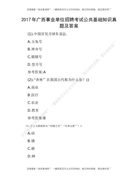 2017年广西事业单位招聘考试公共基础知识真题及答案(1)[更多资源请百度搜索“培实素材网”]