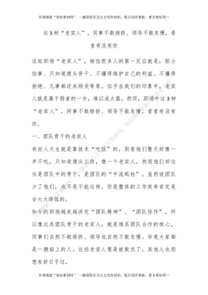 这3种“老实人”,同事不敢排挤、领导不敢怠慢,看看有没有你![更多资源请百度搜索“培实素材网”]