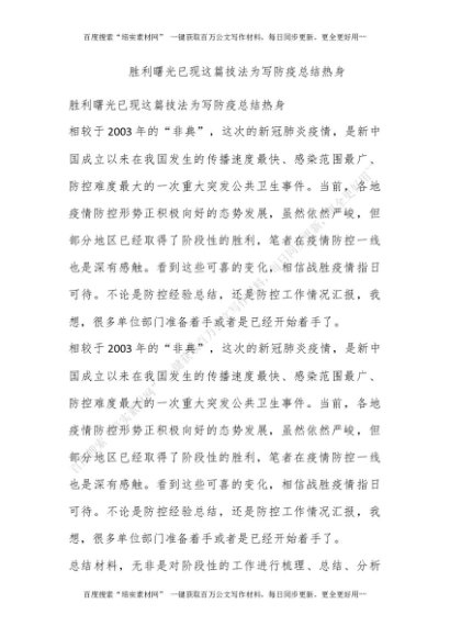 胜利曙光已现!这篇技法为写防疫总结热身![更多资源请百度搜索“培实素材网”]
