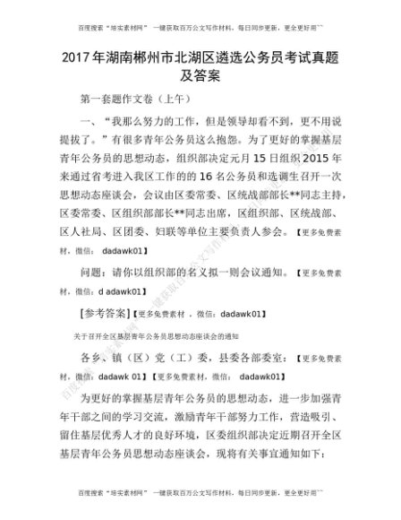 2017年湖南郴州市北湖区遴选公务员考试真题及答案[更多资源请百度搜索“培实素材网”]