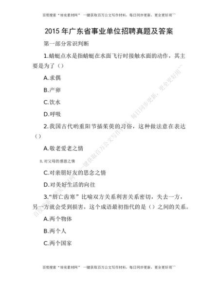 2015年广东省事业单位招聘真题及答案(1)[更多资源请百度搜索“培实素材网”]
