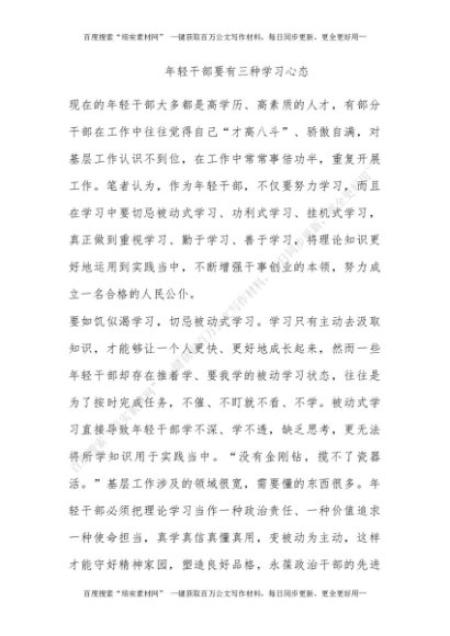 年轻干部要有三种学习心态[更多资源请百度搜索“培实素材网”]