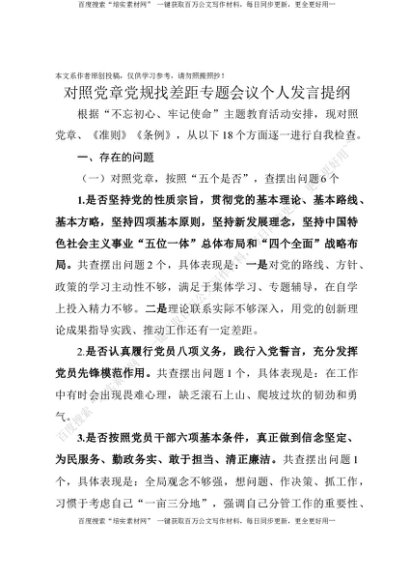 20190808对照党章党规找差距检查材料[更多资源请百度搜索“培实素材网”]