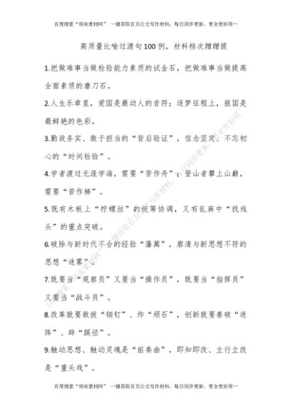 高质量比喻过渡句100例,材料档次蹭蹭提[更多资源请百度搜索“培实素材网”]