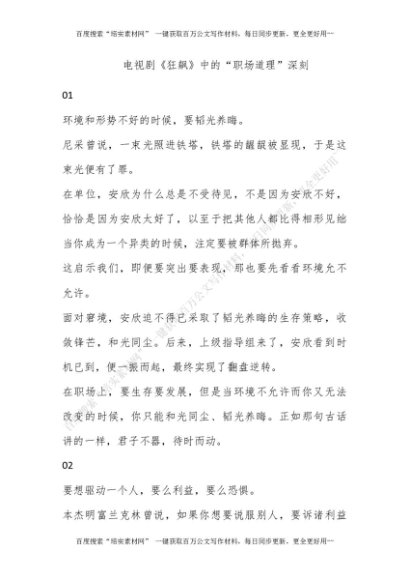 电视剧《狂飙》中的“职场道理”!深刻![更多资源请百度搜索“培实素材网”]