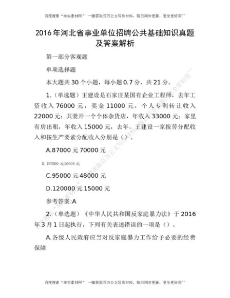 2016年河北省事业单位招聘公共基础知识真题及答案解析[更多资源请百度搜索“培实素材网”]