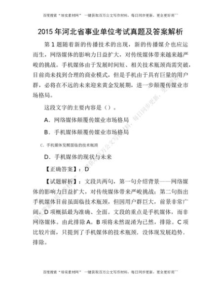 2015年河北省事业单位考试真题及答案解析[更多资源请百度搜索“培实素材网”]
