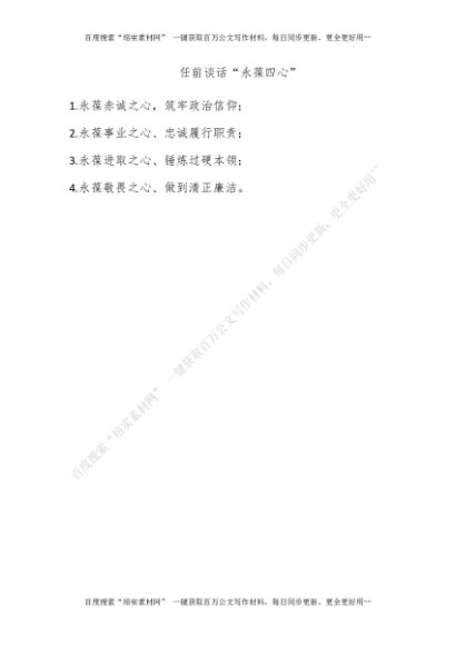 任前谈话“永葆四心”[更多资源请百度搜索“培实素材网”]