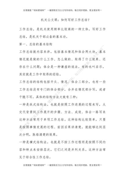 机关公文课:如何写好工作总结?[更多资源请百度搜索“培实素材网”]