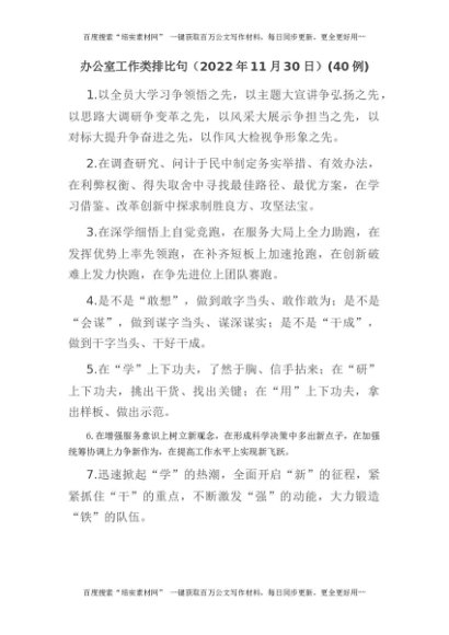 (40例)办公室工作类排比句(2022年11月30日)[更多资源请百度搜索“培实素材网”]
