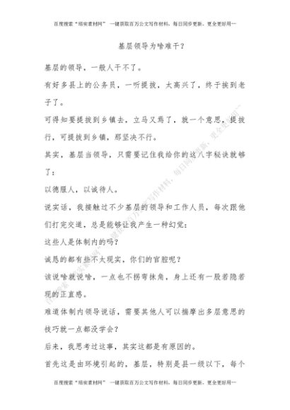 基层领导为啥难干?[更多资源请百度搜索“培实素材网”]