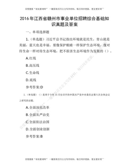 2016年江西省赣州市事业单位招聘综合基础知识真题及答案[更多资源请百度搜索“培实素材网”]