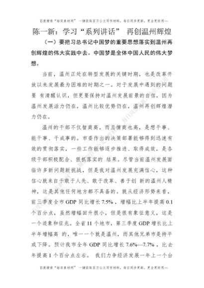 陈一新:学习“系列讲话”再创温州辉煌[更多资源请百度搜索“培实素材网”]
