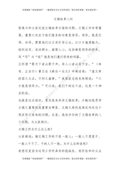 文稿起草八问[更多资源请百度搜索“培实素材网”]