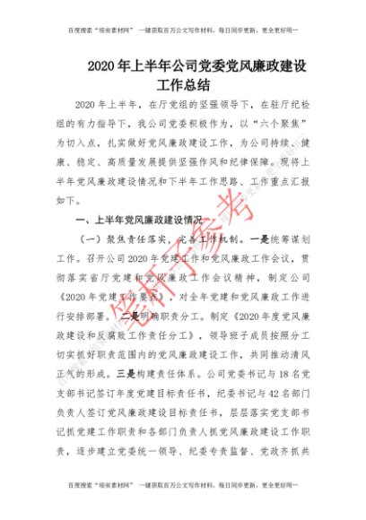2020年上半年公司党委党风廉政建设工作总结 (1)[更多资源请百度搜索“培实素材网”]