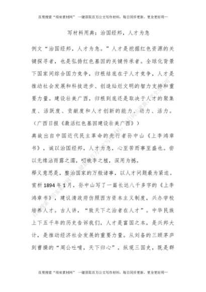 写材料用典:治国经邦,人才为急[更多资源请百度搜索“培实素材网”]