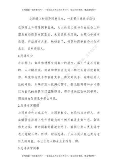 在职场上和领导同事往来,一定要注意这些忌讳![更多资源请百度搜索“培实素材网”]