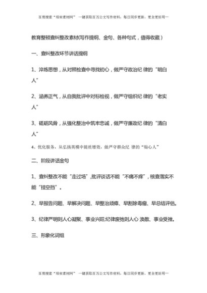 教育整顿查纠整改素材(写作提纲、金句、各种句式,值得收藏)[更多资源请百度搜索“培实素材网”]