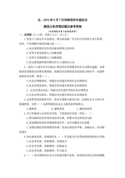 河南郑州市直机关遴选公务员笔试题及参考答案[更多资源请百度搜索“培实素材网”]
