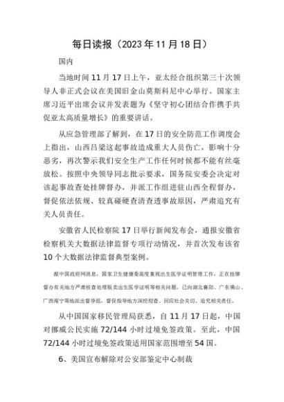 每日读报(2023年11月18日)[更多资源请百度搜索“培实素材网”]