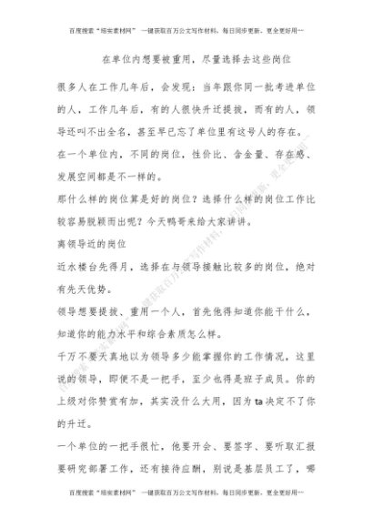 在单位内想要被重用,尽量选择去这些岗位[更多资源请百度搜索“培实素材网”]