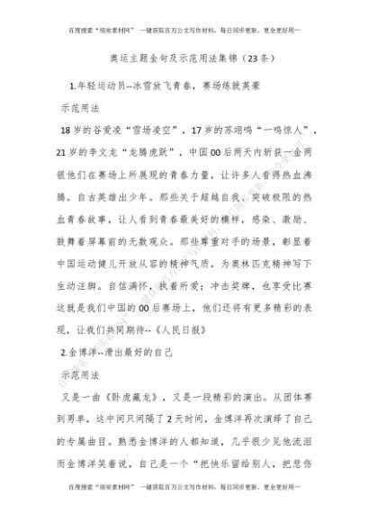 奥运主题金句及示范用法集锦(23条)[更多资源请百度搜索“培实素材网”]