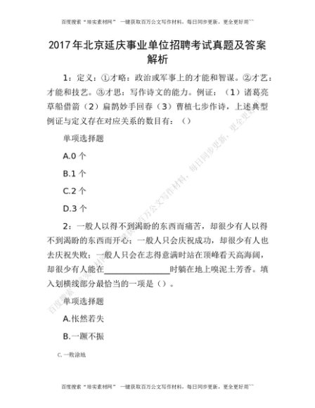 2017年北京延庆事业单位招聘考试真题及答案解析[更多资源请百度搜索“培实素材网”]