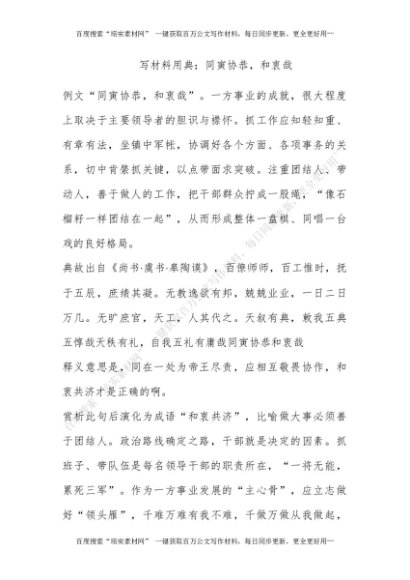 写材料用典:同寅协恭,和衷哉[更多资源请百度搜索“培实素材网”]