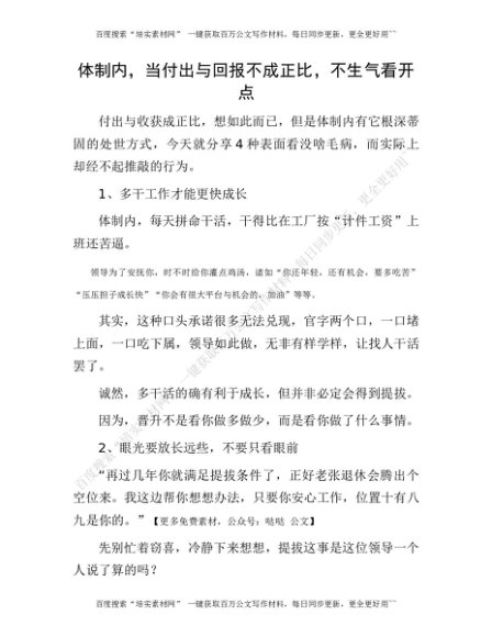 体制内,当付出与回报不成正比,不生气看开点(1)[更多资源请百度搜索“培实素材网”]