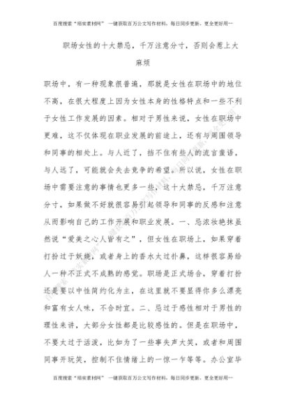 职场女性的十大禁忌,千万注意分寸,否则会惹上大麻烦[更多资源请百度搜索“培实素材网”]
