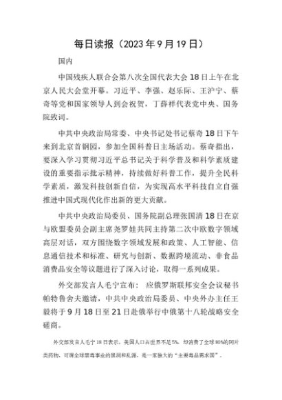 每日读报(2023年9月19日)[更多资源请百度搜索“培实素材网”]
