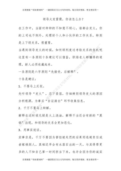 领导大发雷霆,你该怎么办?[更多资源请百度搜索“培实素材网”]