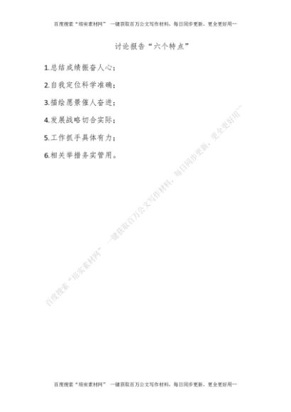 讨论报告“六个特点”[更多资源请百度搜索“培实素材网”]