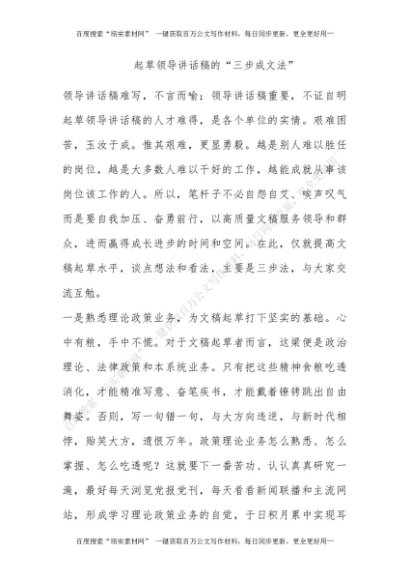 起草领导讲话稿的“三步成文法”[更多资源请百度搜索“培实素材网”]