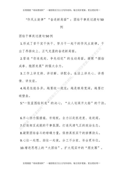 “作风主旋律”“奋进新局面”:团结干事类过渡句50例[更多资源请百度搜索“培实素材网”]