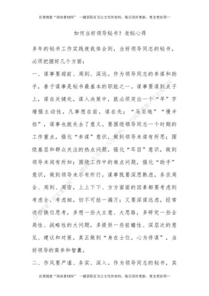 如何当好领导秘书?老秘心得![更多资源请百度搜索“培实素材网”]