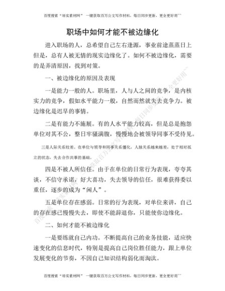 职场中如何才能不被边缘化[更多资源请百度搜索“培实素材网”]