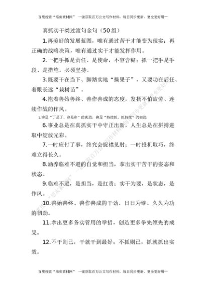 (50组)真抓实干类过渡句金句[更多资源请百度搜索“培实素材网”]
