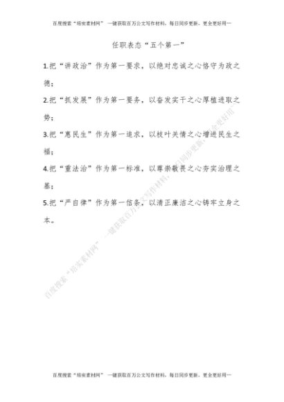 任职表态“五个第一”_1[更多资源请百度搜索“培实素材网”]