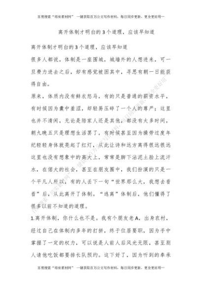 离开体制才明白的3个道理,应该早知道![更多资源请百度搜索“培实素材网”]