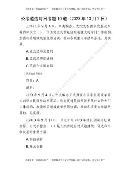 公考遴选每日考题10道(2023年10月2日)[更多资源请百度搜索“培实素材网”]
