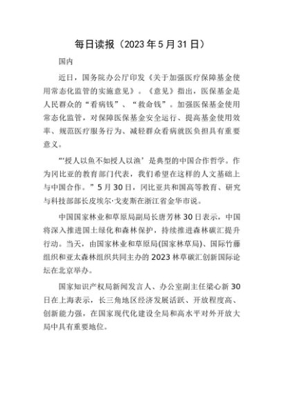 每日读报(2023年5月31日)[更多资源请百度搜索“培实素材网”]