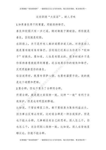 这些职场“大实话”,耐人寻味![更多资源请百度搜索“培实素材网”]