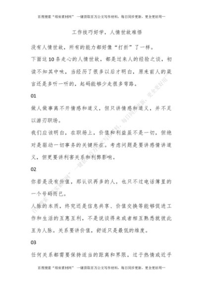 工作技巧好学,人情世故难悟![更多资源请百度搜索“培实素材网”]
