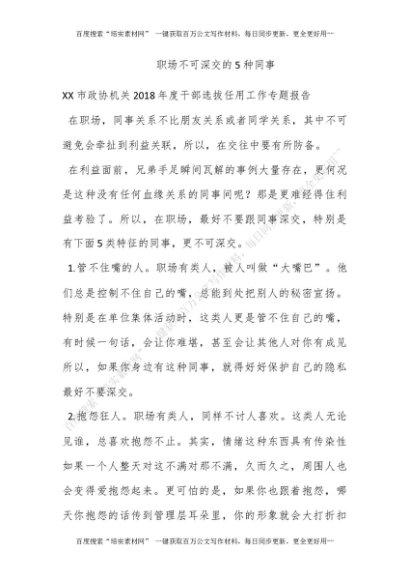 职场不可深交的5种同事[更多资源请百度搜索“培实素材网”]