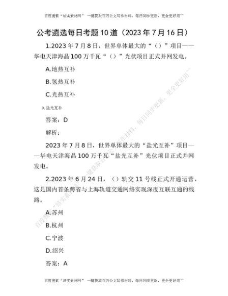 公考遴选每日考题10道(2023年7月16日)(1)[更多资源请百度搜索“培实素材网”]