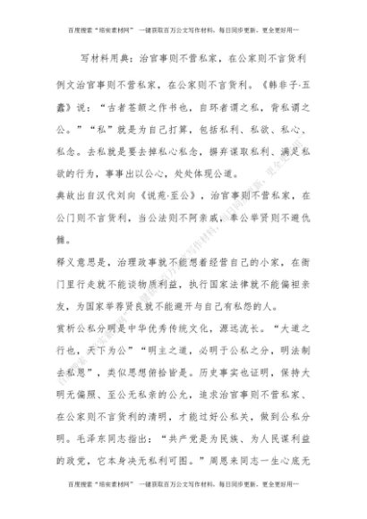 写材料用典:治官事则不营私家,在公家则不言货利[更多资源请百度搜索“培实素材网”]
