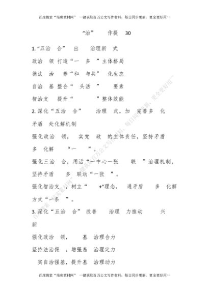“治”字写作提纲30例[更多资源请百度搜索“培实素材网”]