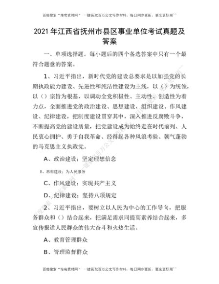 2021年江西省抚州市县区事业单位考试真题及答案[更多资源请百度搜索“培实素材网”]